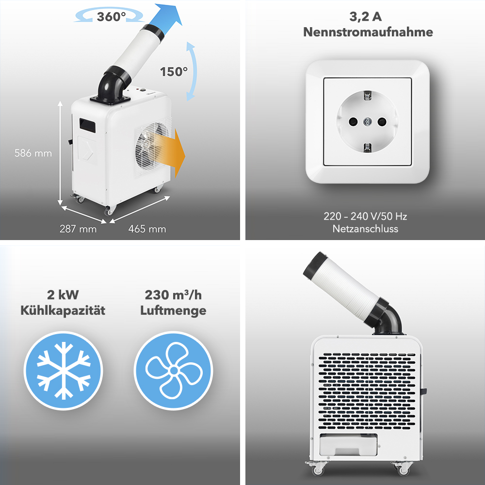 - Mobile Klimagerät zur geräuschlosen Kühlung von Wohnwagen und Wohnmobilen