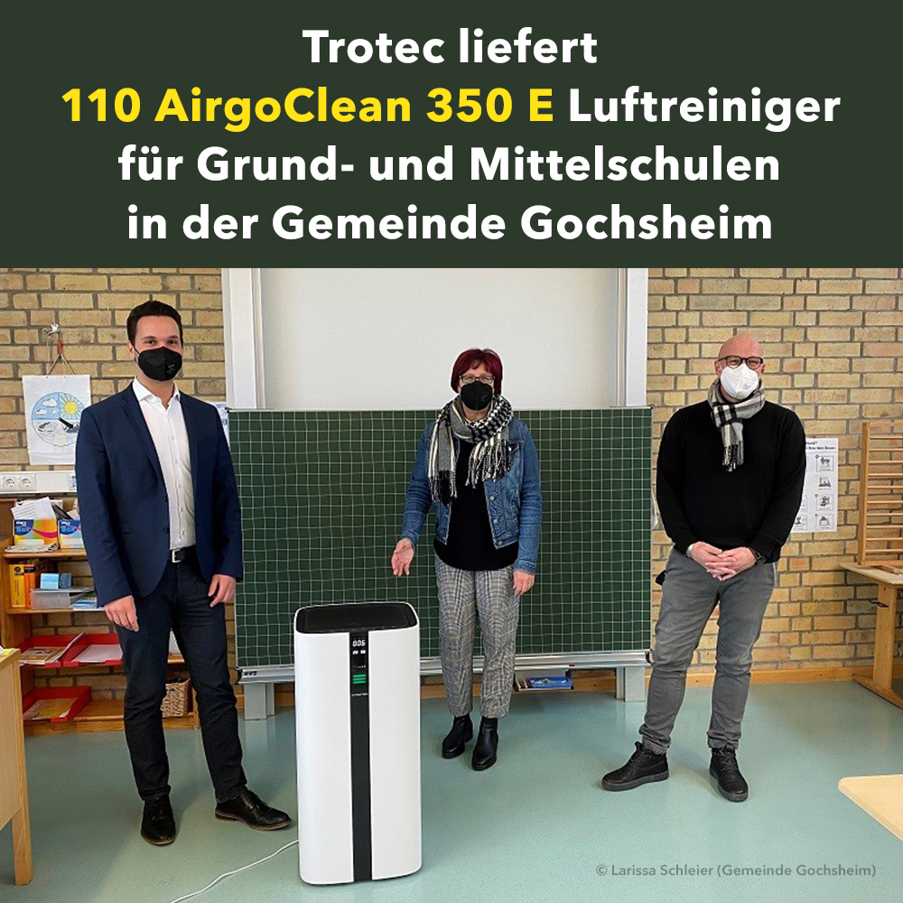 Saubere und vor allem virenfreie Luft ist für einen sicheren Präsenzunterricht inmitten der Corona-Pandemie unabdingbar. Daher war es für Gochsheims Bürgermeister Manuel Kneuer eine Selbstverständlichkeit, zum Schutz der Kinder in mobile Luftreiniger zu investieren, um das Ansteckungsrisiko im den städtischen Grund- und Mittelschulen sowie im AWO Hort bestmöglich zu reduzieren. Manuel Kneuer folgt damit den Empfehlungen führender Aerosolforscher, die der technischen Luftreinigung eine wichtige Rolle in der Pandemiebekämpfung zusprechen. Mehr als 99 Prozent aller Corona-Ansteckungen erfolgen über die Einatmung infektiöser Aerosolpartikel in Innenräumen. Werden diese winzig kleinen Schwebstoffteilchen durch mobile Luftreiniger aus der Raumluft entfernt, kann das indirekte Ansteckungsrisiko nahezu ausgeschlossen werden. Entschieden hat sich die Gemeinde für mobile AirgoClean 350 E Luftreiniger von Trotec – aus gutem Grund.