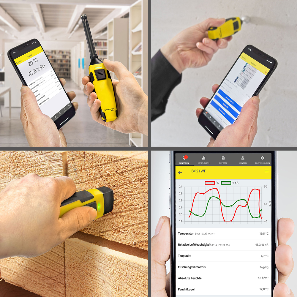 Überwachen Sie mit den Handmessgeräten von Trotec die Luft- und Materialfeuchte sowie alle relevanten Klimawerte. Handlich, robust und präzise, ob in Sekundenschnelle oder für die längere Kontrollen.