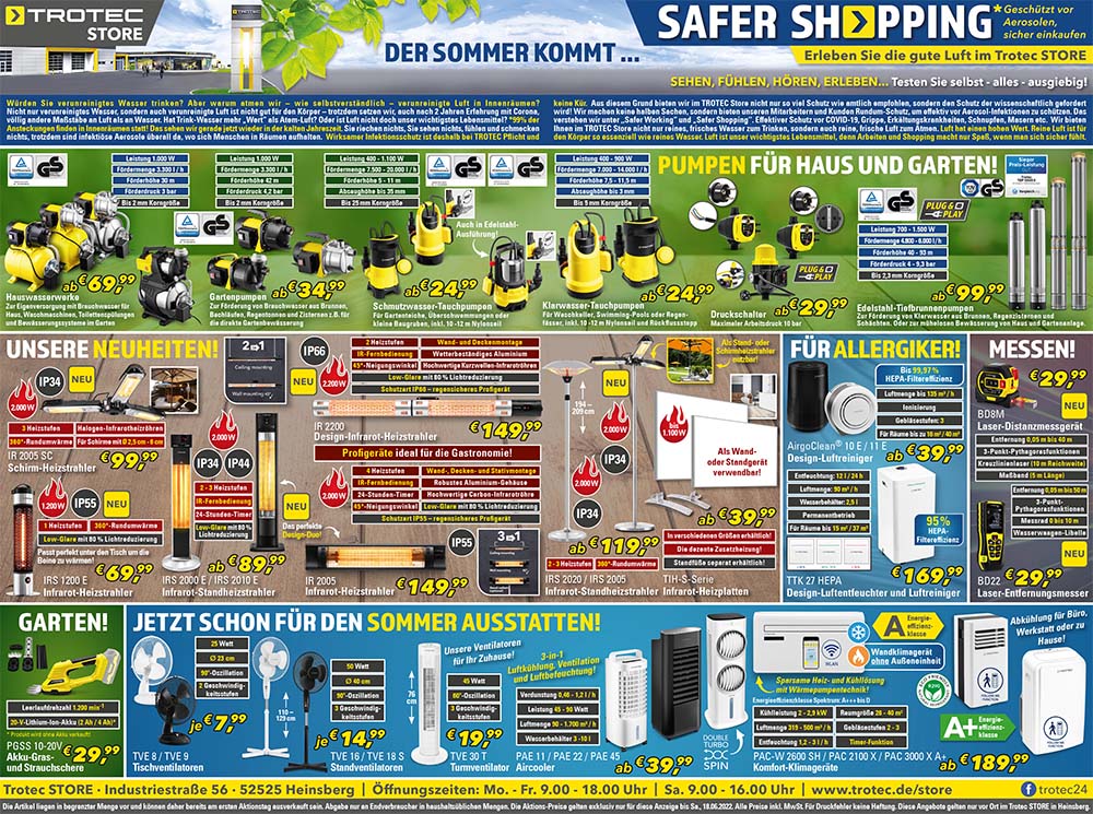 *Die Artikel liegen in begrenzter Menge vor und können daher bereits am ersten Aktionstag ausverkauft sein. Abgabe nur an Endverbraucher in haushaltsüblichen Mengen. Die Aktions-Preise gelten exklusiv nur für diesen Newsletter bis Sa. 18.06. und sind nur bei Trotec vor Ort in Heinsberg gültig.