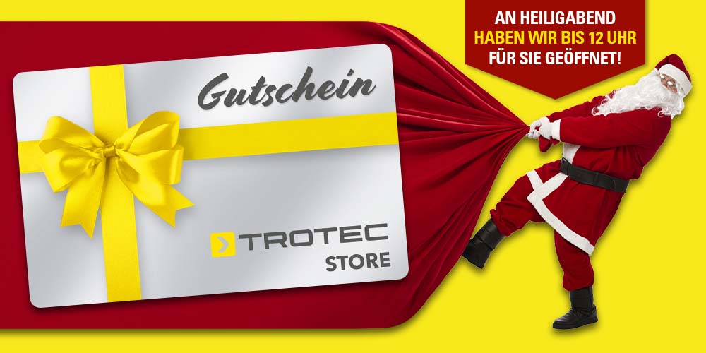 *Die Artikel liegen in begrenzter Menge vor und können daher bereits am ersten Aktionstag ausverkauft sein. Abgabe nur an Endverbraucher in haushaltsüblichen Mengen. Die Aktions-­Preise gelten exklusiv nur für diesen Newsletter bis Fr., 24.12. und sind nur bei Trotec vor Ort in Heinsberg gültig.
