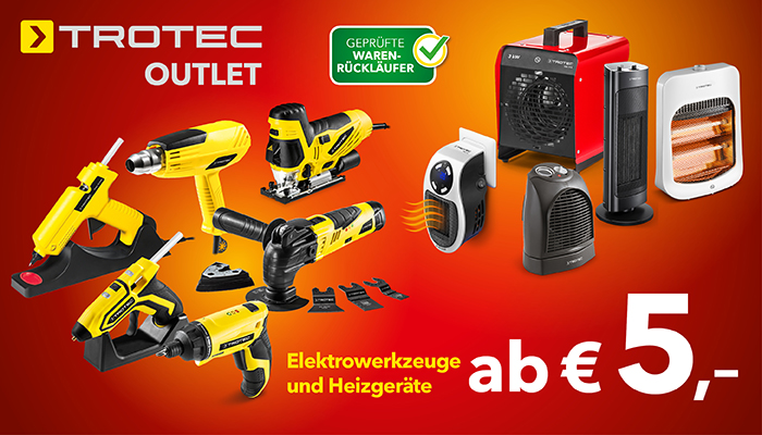 In unserem Trotec OUTLET bieten wir diese Woche Elektroheizer und Elektrowerkzeuge an.