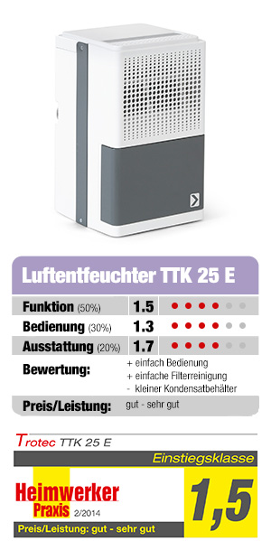 Gesamtnote 1,5 für Luftentfeuchter TTK 25 E von Heimwerker Praxis
