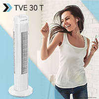 Der Hochsommer naht mit Wahnsinns-Temperaturen. Jetzt wird es langsam Zeit für Ihre persönliche Kühlungsoffensive – beispielsweise mit dem endlich wieder lieferbaren Turmventilator TVE 30 T und seinem tollen Preis-Leistungsverhältnis: Innovative Technik mit einer Leistungsaufnahme von 45 Watt und 3 Gebläsestufen sowie automatischer 80°-Oszillation und inklusive Timer-Funktion. Alles höchst ansprechend verpackt in einem ebenso schlanken wie eleganten Design. Und das alles kostet keine 30 Euro! Na, was sagen Sie dazu?