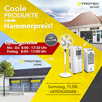 Besuchen Sie uns entweder in unserem neuen Trotec OUTLET in der Karl-Arnold-Str. 32 / Ecke Ulmenstraße in Heinsberg-Oberbruch und machen Sie Ihr Warenrückläufer-Schnäppchen gegen die warmen Temperaturen…oder lassen Sie sich, wie gewohnt, im Trotec STORE in der Grebbener Str. 3 gleich um die Ecke beraten und finden Sie das passende Neuware-Gerät.