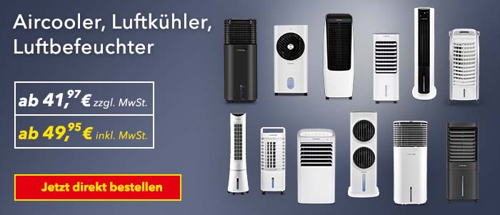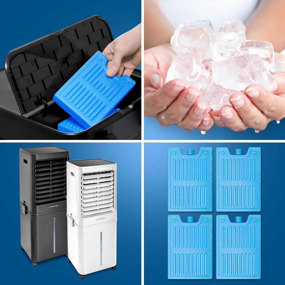 Unser Tipp für besonders heiße Tage: Je kälter die Wasserbefüllung der Luftkühler ist, desto größer ist auch die Kühlleistung. Wenn Sie die vier im Lieferumfang enthaltenen Kühl-Akkus in den Wasserbehälter geben, kann die Kühlleistung noch gesteigert werden. Auch mit Eiswürfeln lässt sich dieser zusätzliche Frische-Kick erzielen.