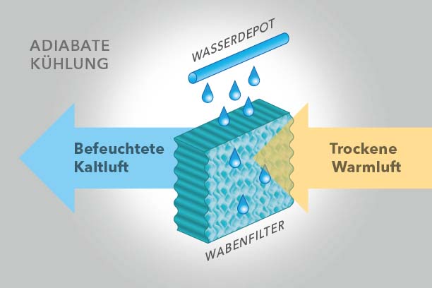 - Außenkühlung durch Verdunstungskälte mit Honeycomb-Technologie