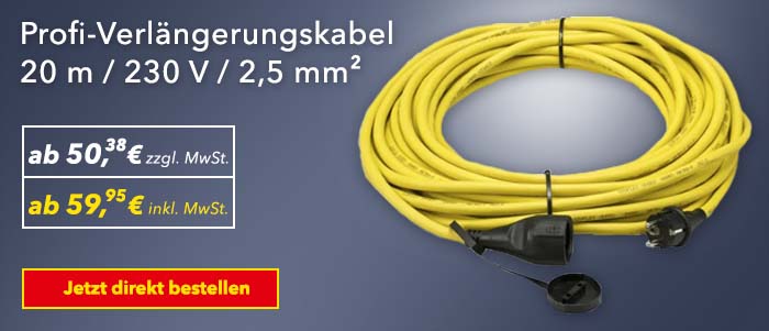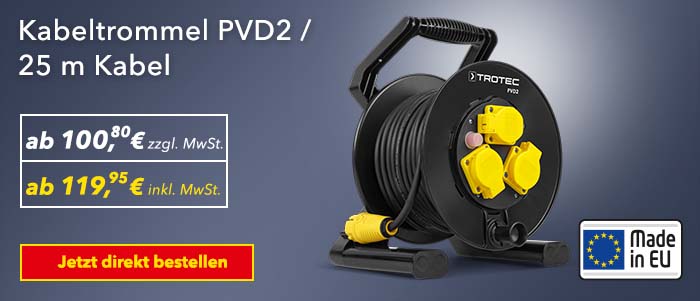 Mit unserem Profi-Verlängerungskabel (20 m) oder der praktischen Kabeltrommel PVD2 (25 m) lassen sich auch lange Strecken bis zur nächsten Steckdose spielend einfach überbrücken. Bestellen sie das notwendige Zubehör am besten direkt mit, damit die Abkühlung nicht an einer freien Steckdose scheitert!