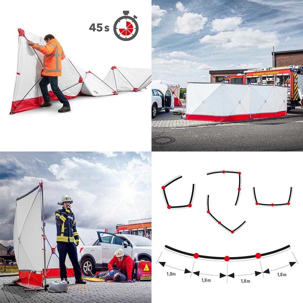- Blickdichter Sichtschutz zur Wahrung der Privat- und Intimsphäre von Verletzten und Unfallopfern