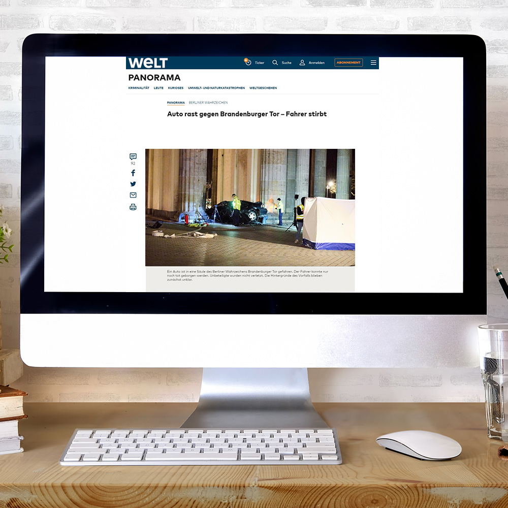 Noch immer rätseln die Ermittler der Polizei über die Ursachen des Unfalles am Brandenburger Tor in Berlin. Am Montag raste ein Autofahrer mit hoher Geschwindigkeit in die bekannte Sehenswürdigkeit. Das Fahrzeug blieb zwischen den Säulen des Tores stecken und geriet in Brand. Der Fahrzeugführer verstarb. Um den Fahrer aus dem Wrack zu bergen und vor den Blicken neugieriger Passanten zu schützen, wurde der Unfallort unmittelbar nach dem Eintreffen der Einsatzkräfte mit VarioScreen-Sichtschutzwänden von Trotec abgesichert.