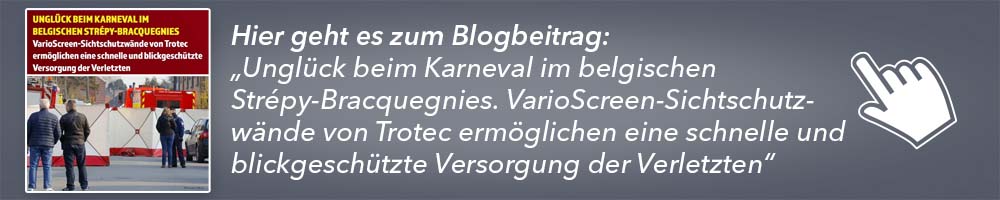 Eine sichere, schnelle sowie wund- und wettergeschützte Abschirmung von Einsatzorten ermöglichen die mobilen VarioScreen-Sichtschutzwände von Trotec, die in vielen Ländern Europas zur Standardausrüstung von Rettungs- und Einsatzfahrzeugen gehören.