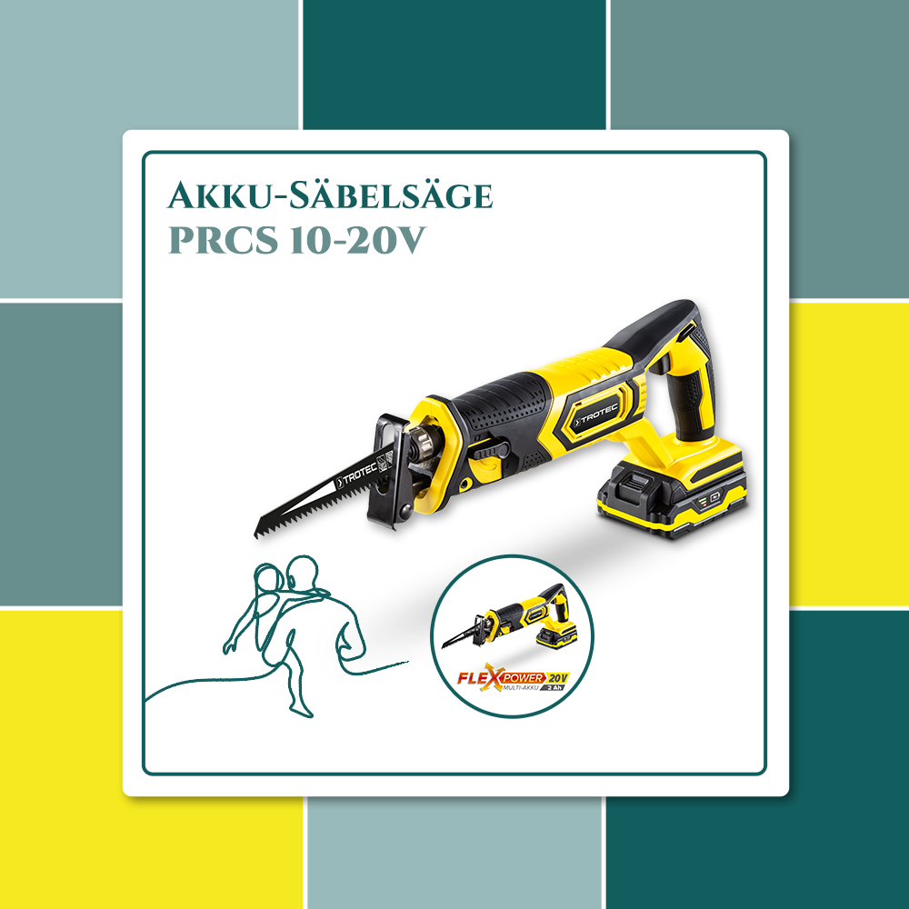 Die kabellose Säbelsäge PRCS 10-20V mit leistungsstarkem 20V/2Ah-Flexpower-Multiakku von Trotec – für viele Materialien und anspruchsvolle Schnitte