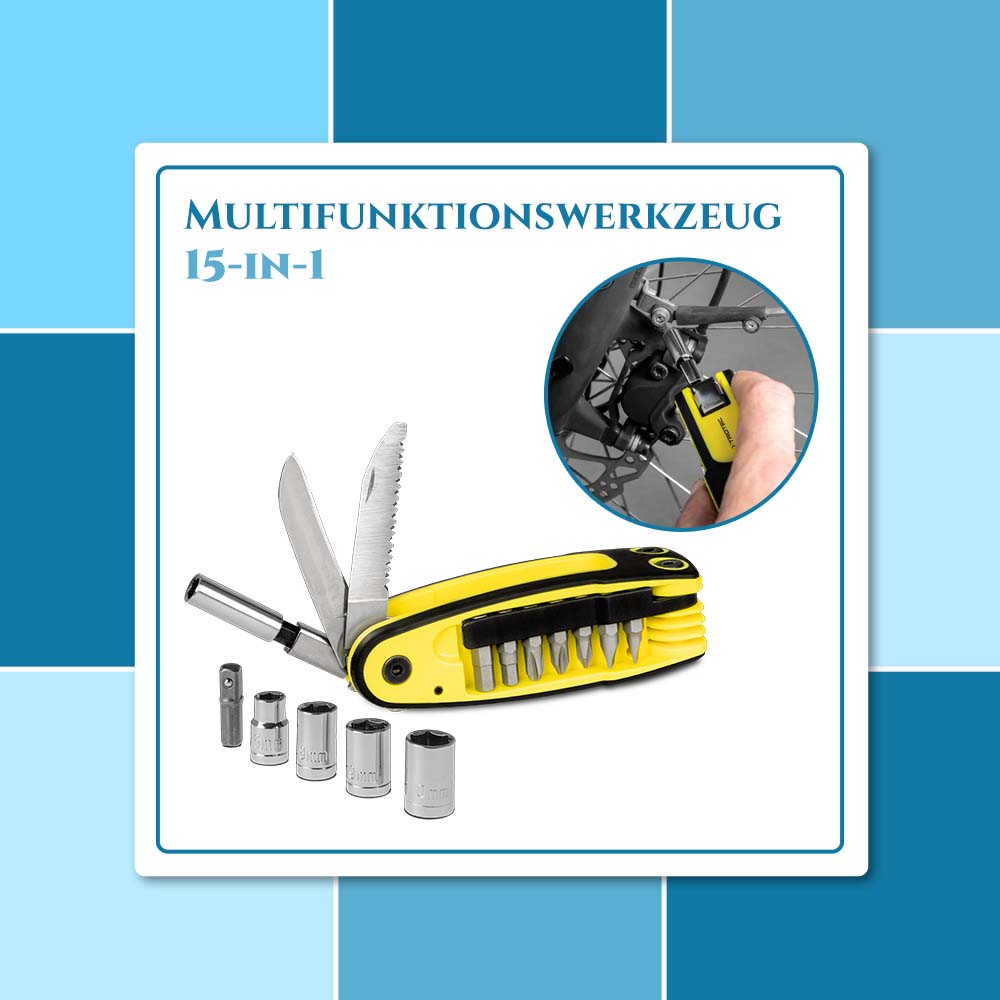 Ob beim Heimwerken, auf der Arbeit oder bei Fahrrad- und Motorradtouren − das vielseitige 15‑in‑1 Multifunktionswerkzeug von Trotec gehört einfach in jeden Haushalt, jede Werkstatt und in jede Reiseausrüstung. Mit Schraubendreher-Bits, Stecknüssen, Klappmesser und Mini-Säge im Hosentaschenformat.