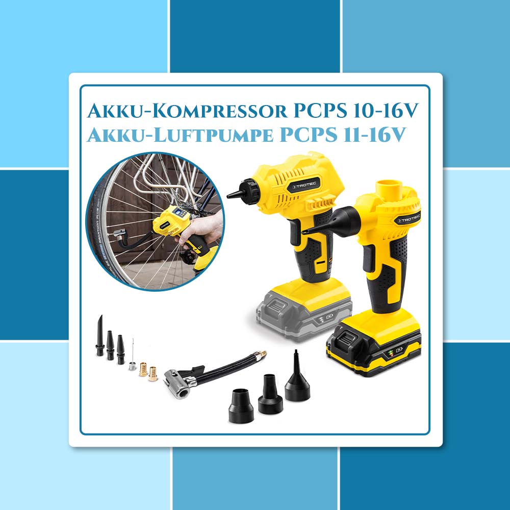 Die Kombination aus Akku-Kompressor und Akku-Luftpumpe stattet Sie perfekt für jeden Fall aus. Beide Geräte sind mit einer nützlichen LED-Arbeitsleuchte ausgestattet, welche einen flexiblen Einsatz auch bei widrigen Lichtverhältnissen ermöglicht.