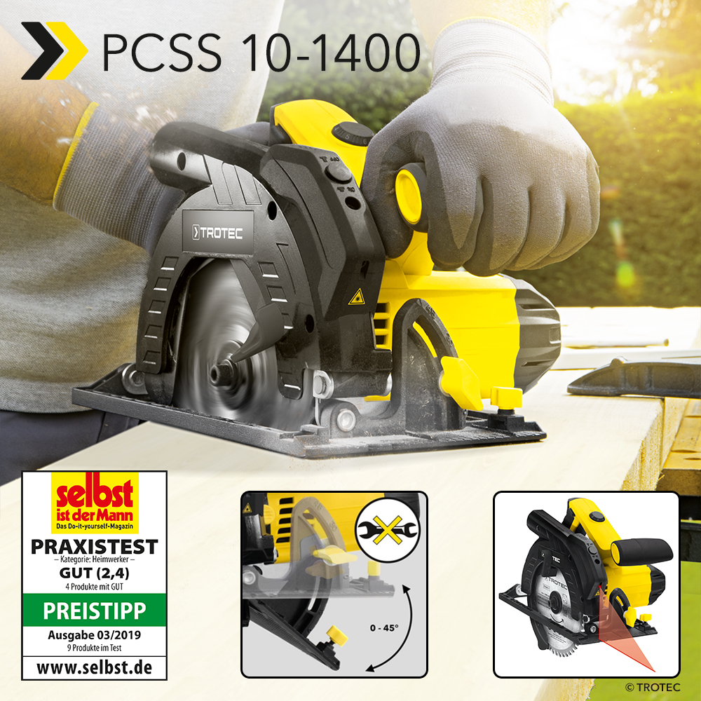 Die Experten des renommierten Verbraucherportals CHIP 365 haben die Ergebnisse des Handkreissägen-Tests von ‚Selbst ist der Mann‘ und deren Portal ‚selbst.de‘ im April 2020 geprüft – und befinden sie nach wie vor als aktuell: „Als Preisknüller erwies sich jedoch das Modell Trotec PCSS 10-1400 für unter 50 Euro.“ In der Testwerkstatt mussten die Handkreissägen den Praxistest bestehen. Von den Experten wurde genau nachgemessen, denn es ging nicht nur um Leistung und Geschwindigkeit, sondern auch um Genauigkeit und Qualität.