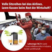 Während Airlines ihre Flugzeuge bis auf den letzten Sitz ausbuchen können, müssen Hotels, Restaurants, Theater und selbst therapeutische Einrichtungen strenge Auflagen erfüllen, damit sie ihren Betrieb wiederaufnehmen dürfen. Je nach Bundesland und Branche gelten Auslastungsgrenzen, die eine maximale Belegung von nur 60 Prozent der Tische, Hotelbetten oder Zuschauerplätze erlauben. Für viele Unternehmen sind diese Vorgaben ein existenzbedrohender Ritt auf der Rasierklinge, da die Kassen aufgrund der behördlich angeordneten Schließungen ohnehin schon leer sind. Und dennoch gelten nur für die Luftfahrtindustrie Sonderregeln. Trotz enger Sitzreihen, einem Sitzabstand von nur 50 cm und vergleichsweise hohem Infektionsrisiko starten pünktlich zum Beginn der Sommerferien wieder vollbesetzte Flugzeuge Richtung Süden. Die Fluggesellschaften beteuern, dass aufgrund der Lüftungstechnik an Board keine Ansteckungsgefahr bestehen würde. Mehr noch, die Qualität der Kabinenluft soll sogar der Luft in Operationssälen entsprechen. Fakt ist, dass die Lufthansa nach eigenen Aussagen HEPA-Filter der Schutzklasse 13 einsetzt, die zudem alle 12-18 Monate ausgetauscht werden. Allerdings gibt es mittlerweile auch mobile Luftreinigungslösungen, um Mitarbeiter, Kunden und Gästen vor einer Ansteckung mit dem Coronavirus zu schützen.