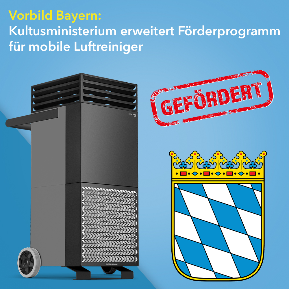 Der staatliche Förderanteil beim Kauf von mobilen Raumluftreinigern liegt in der zweiten Antragsrunde bei 50 Prozent, der Förderhöchstbetrag pro Raum beträgt 1.750 Euro. Die Antragstellung ist ab dem 25. Januar 2021 über ein Antragsformular auf der Webseite des Landes Bayern möglich.