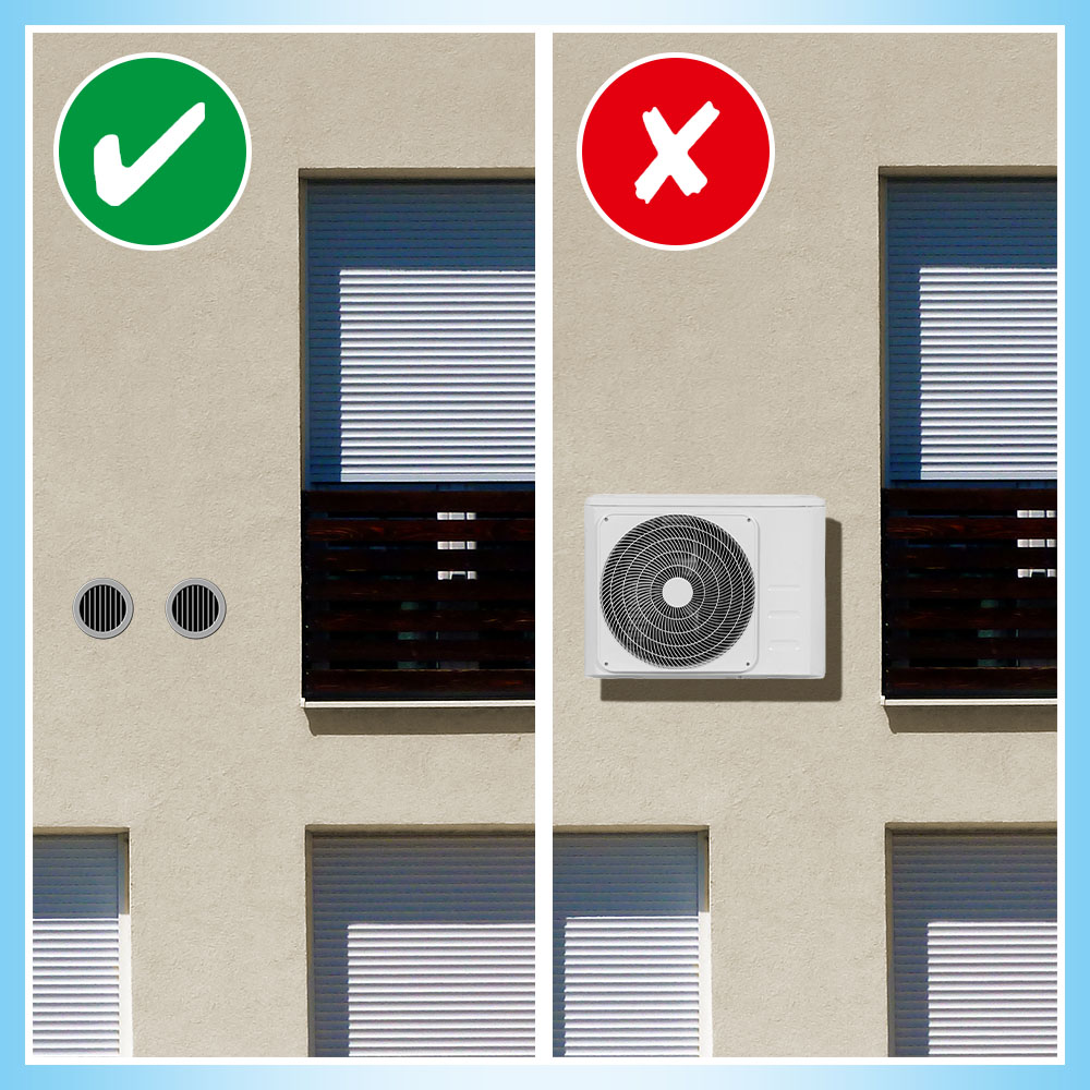 Darüber hinaus punktet das PAC-W 2600 SH mit einem weiteren unschlagbaren Vorteil gegenüber altbekannten Split-Klimageräten. Das als Wand- und Truhengerät nutzbare Klimagerät kommt komplett ohne unschöne Außeneinheit aus. Der Luftaustausch erfolgt über nahezu unsichtbare Luftauslässe.