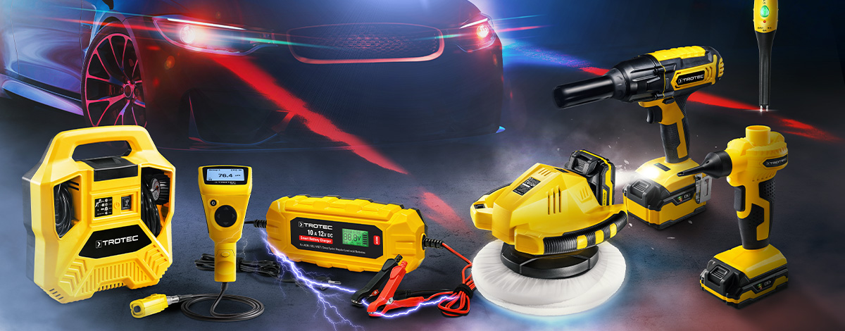 Echte Autofans verbringen die freien Weihnachtstage in der Garage. Und was braucht der Schrauber zwischen Blech und Benzingeruch? Nützliche Werkzeuge, die das Schrauben am Fahrzeug und die Fahrzeugpflege erleichtern! Mit unseren starken Akku-Drehschlagschraubern gelingt der Reifenwechsel wie in der Formel 1. Aufsetzen, lösen, wechseln! Damit das Fahrzeug nach der Winterpause glänzt, empfiehlt sich unsere ergonomisch geformte Akku-Poliermaschine. Praktisch und hilfreich beim Gebrauchtwagenkauf sind die professionellen Schichtdicken-Messgeräte von Trotec, um nachlackierte Unfallschäden aufzudecken. Wer es noch genauer wissen möchte, verwendet zusätzlich das Kfz-Videoskop zur optischen Inspektion der Hohlräume. Für gute Sicht – selbst im hintersten Winkel des Fahrzeuges – sorgen unsere praktischen Akku-Arbeitsleuchten, die je nach Modell auch als Warnblinklicht eingesetzt werden können. Abgerundet wird unser umfangreicher „Boxenservice“ durch den handlichen Kompressor in Koffer-Konstruktion, um den Reifendruck am Fahrzeug ganz bequem in der heimischen Garage zu überprüfen.