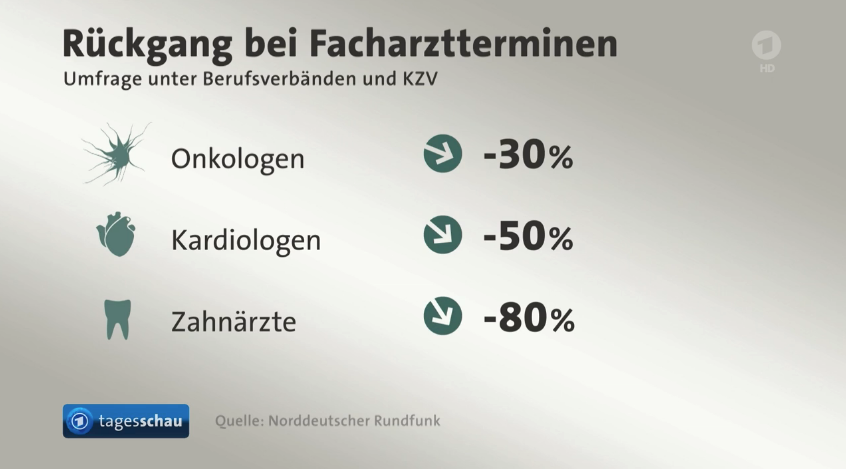 Rückgang bei Facharztterminen um bis zu 80 Prozent