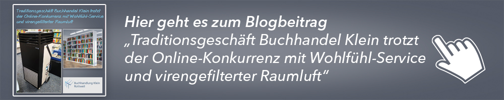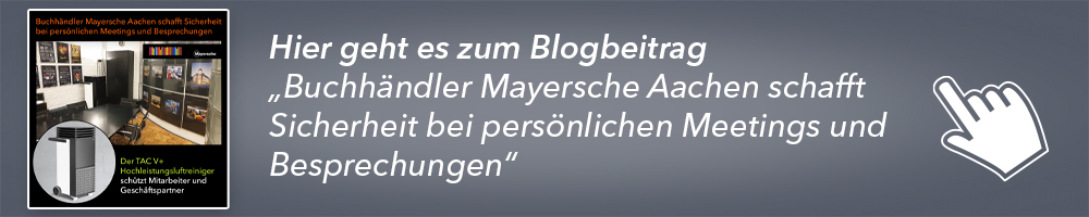 Erfahren Sie hier, wie das Aachener Buchhandelsunternehmen Mayersche und das Rottweiler Traditionsgeschäft Buchhandel Klein mit TAC V+ Luftreinigern für eine gesunde Atmosphäre zum Wohlfühlen sorgen – frei von Viren in der Luft: