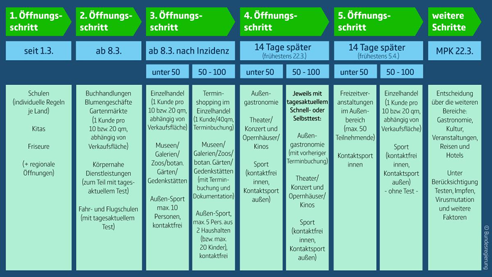 Der Stufenplan der Bundesregierung und Länder für Öffnungen: