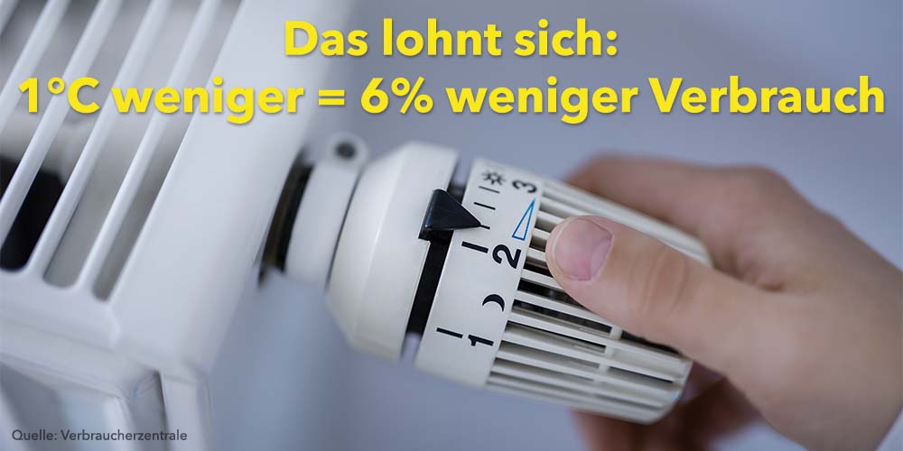 Jochem Weingartz rät daher: „Wohnräume sollten im Winter nicht dauerhaft unbeheizt bleiben. Kühlt ein Raum sehr stark aus, kostet es deutlich mehr Energie, den Raum wieder aufzuheizen, anstatt die Raumtemperatur auf einem konstant niedrigeren Niveau zu halten.“ Besser ist es, die Raumtemperatur nur um ein oder zwei Grad abzusenken. Das spart bereits eine Menge Heizkosten ein: „Jedes Grad Raumtemperatur weniger senkt die Heizkosten um rund sechs Prozent!“