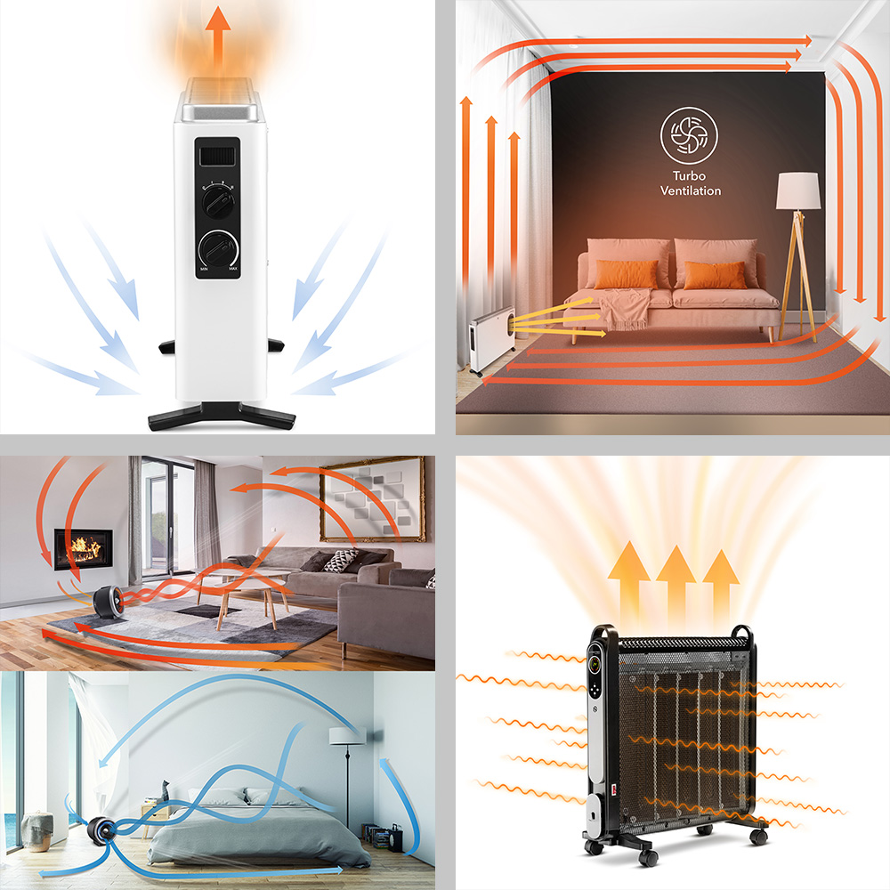- Einfache Installation und Nutzung: Mobile Elektroheizer sind steckerfertige Heizungsalternativen. Einfach das Kabel in die Steckdose einstöpseln, fertig! Aufgrund ihrer geringen Größe lassen sich die zumeist mit einem Tragegriff ausgestatteten Elektroheizer bequem in verschiedenen Räumen nutzen.