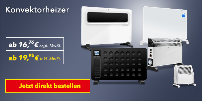 Mobile Konvektorheizer sind handlich, praktisch und wahre Schnellheizgeräte. Die kompakten Heizgeräte sind bei Trotec mit Leistungswerten von 450 Watt bis 2.500 Watt zum Preis ab 24,95 Euro erhältlich.