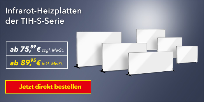 Eine Sonderform unter den elektrischen Heizgeräten nehmen Infrarot-Heizplatten mit einer Leistungsaufnahme von 300 Watt bis 1.100 Watt ein, die wahlweise frei im Raum aufgestellt oder flach wie ein Bild an die Wand oder Decke montiert werden können. Die eleganten Heizer mit Infrarot-Technik sind bei Trotec bereits ab 119,95 Euro erhältlich und haben es trotz ihrer flachen Bauweise leistungstechnisch in sich.