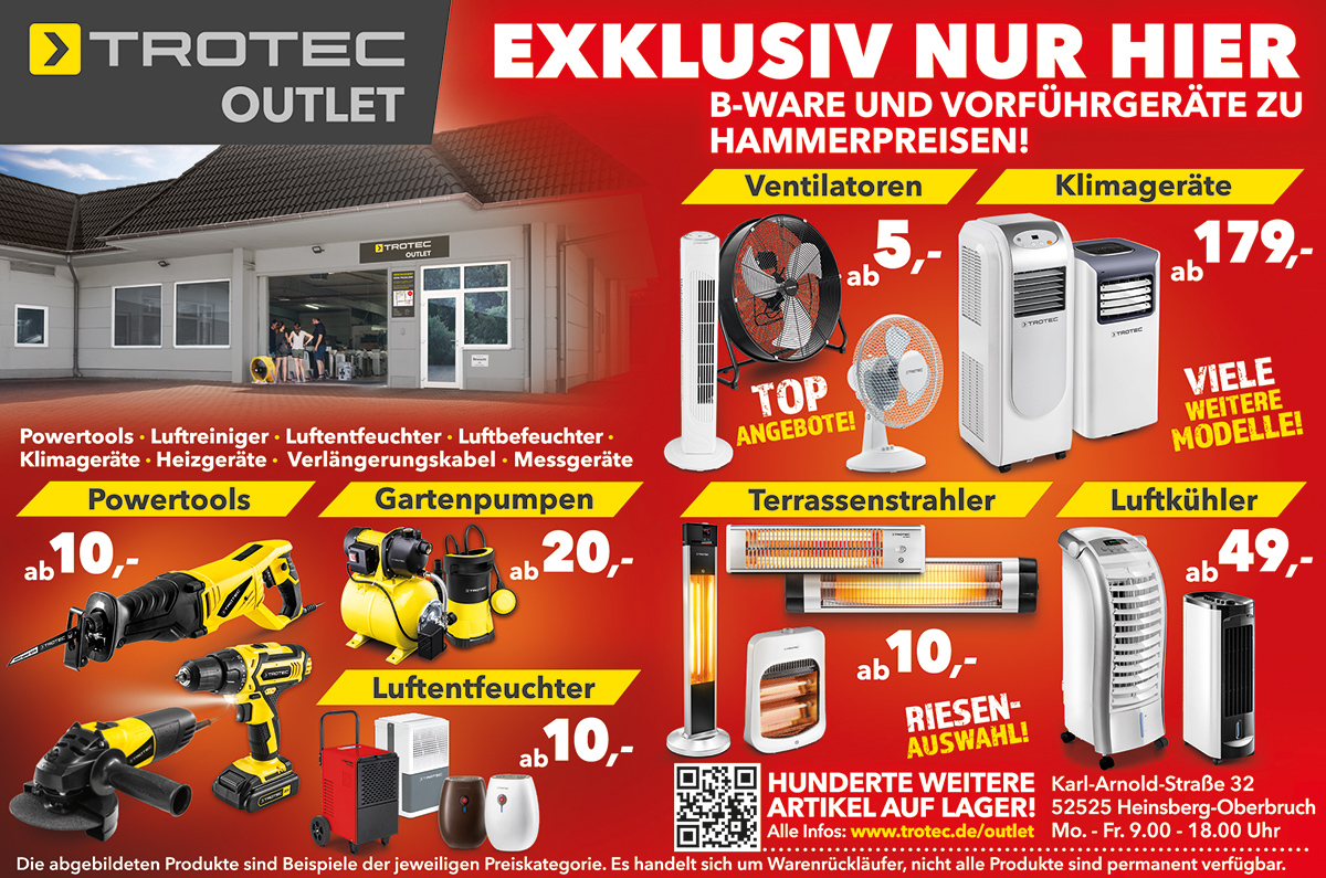 Sonderposten und Warenrückläufer zu Hammerpreisen gibt es nur im OUTLET in Heinsberg-Oberbruch: