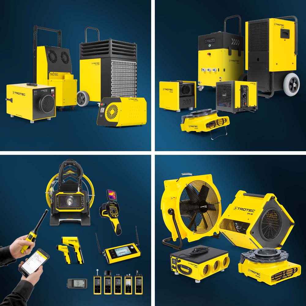 Vorgestellt werden Trotec-Innovationen und Produktneuheiten für die Wasserschadenbeseitigung: