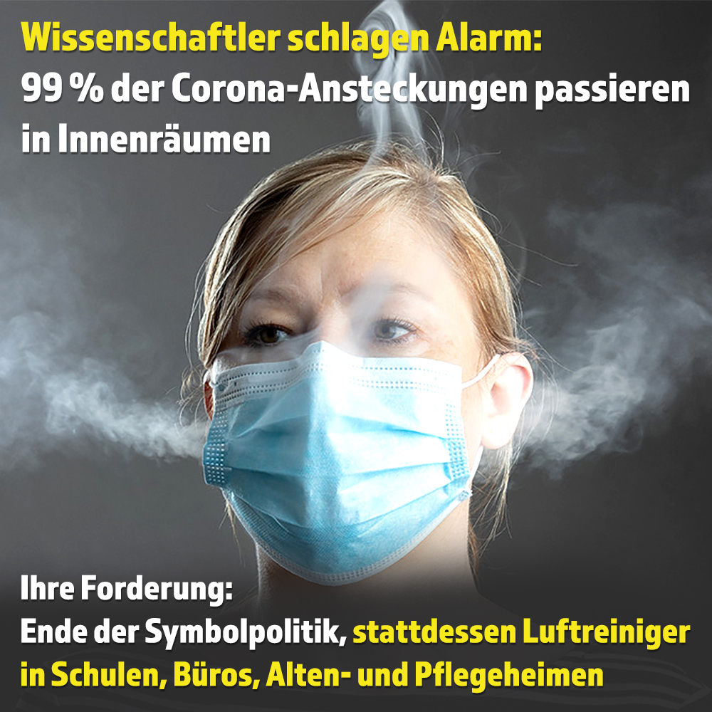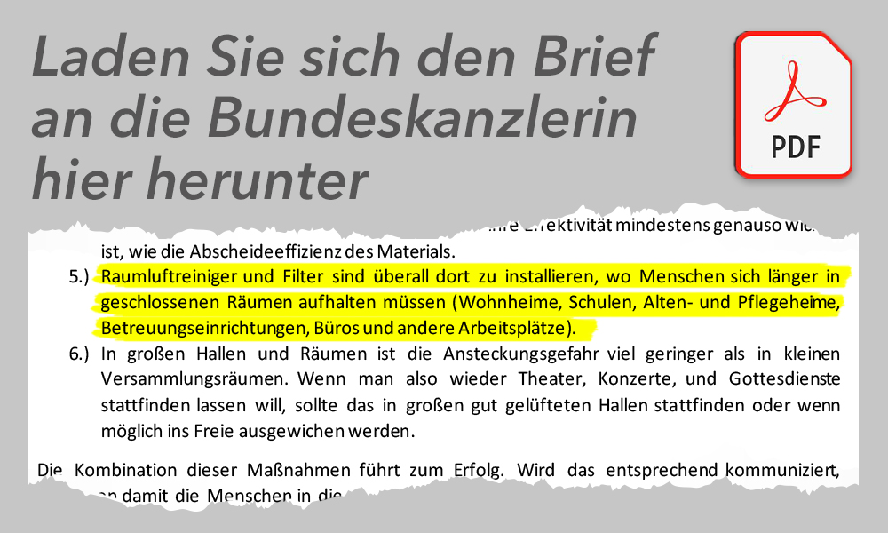 Es stelle sich die Frage, warum der Großteil der Corona-Maßnahmen dennoch auf den nur geringen Anteil von 0,1 – 1 % der Gesamtinfektionen durch Tröpfchen abziele, anstatt sich des eigentlichen Hauptproblems anzunehmen: „Wir müssen uns um die Innenräume kümmern.“. Hier könnten mobile Luftreiniger sofort und ohne Versorgungsengpässe für eine Eindämmung der Infektionszahlen sorgen. Stattdessen verschwenden wir „unsere begrenzten Ressourcen auf die wenigen Promille der Ansteckungen im Freien“, heißt es im Brandbrief der Wissenschaftler.