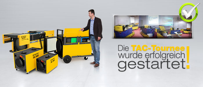 Der dritte Tag der TAC-Tournee 2013 ist vorbei. Auf der Tour bieten wir den Teilnehmern nach dem Motto „360° Luftreinigung: von der Messtechnik bis zur Anwendungstechnik“ ein Rundum-Paket in Theorie und Praxis. Denn nicht nur die kraftvollen Luftreiniger, sondern auch die für solche Einsätze passende Messtechnik stellt Referent Christoph Thielen den Interessenten vor. Der dritte Tourtag ist vorbei. Ab nächsten Dienstag geht es in Nürnberg weiter.