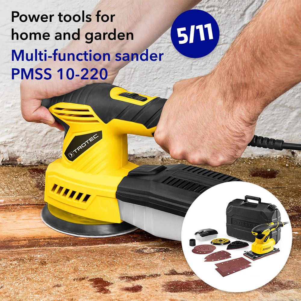 An orbital sander is recommended if large areas of old paint need to be removed. If, on the other hand, surfaces are to be polished smooth, it is best to use a random orbital sander. And if you want to sand precisely and right to the edge in corners, a delta sander is a good choice. Or you can simply go for the practical and powerful 3-in-1 Multifunctional Sander PMSS 10-220. It has the right answer to every sanding requirement because the device can be converted into a fully-fledged orbital sander, random orbital sander or delta sander in just a few simple steps.