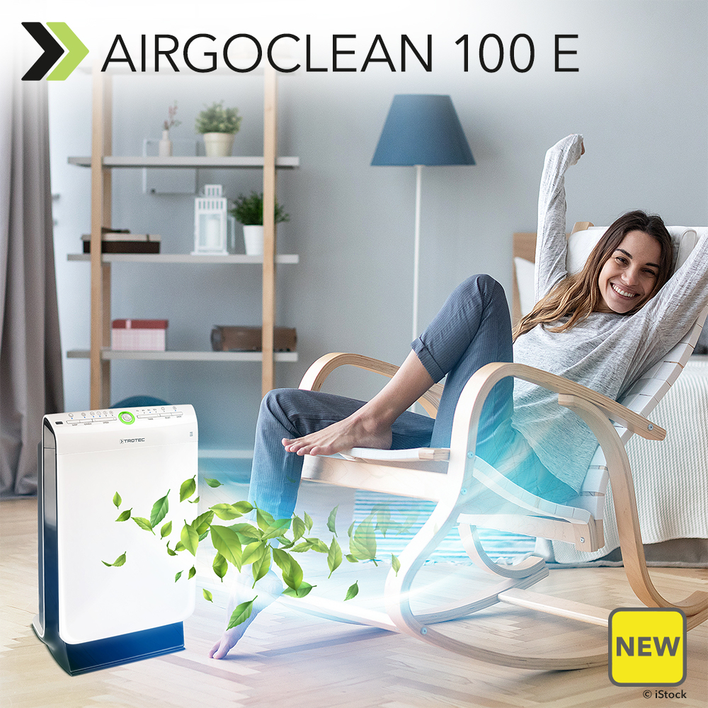 Can you take a guess at how many potentially harmful particles are floating around us in a cubic centimetre of indoor air? Maybe 100? Or 1000? At what do you think we breathe in in the air every day? An estimate in litres? Well, it may surprise you that you find some of the answers a little unsettling – but Trotec offers real solutions, not just mere information: Just like the AirgoClean 100 E designer air purifier, which is finally available again and which provides clean air that is 95% free of suspended pathogenic particles.