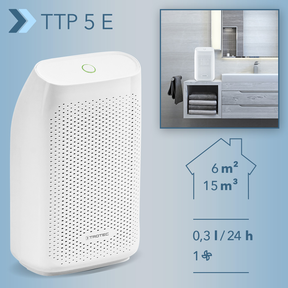 Where does mould feel particularly cosy at home in yours house, in your flat? Well, in the sensitive areas of moisture, for example in small sanitary rooms without windows, the food pantry and of course in the wardrobe ans shoe closet. Just about anywhere, where the humidity is high, the room temperature is low and your watchful eye is rare. The Peltier Dehumidifier TTP 5 E, which is available again, provides a solution: It frees the air from excess moisture, reduces condensation and thus prevents the formation of mould.