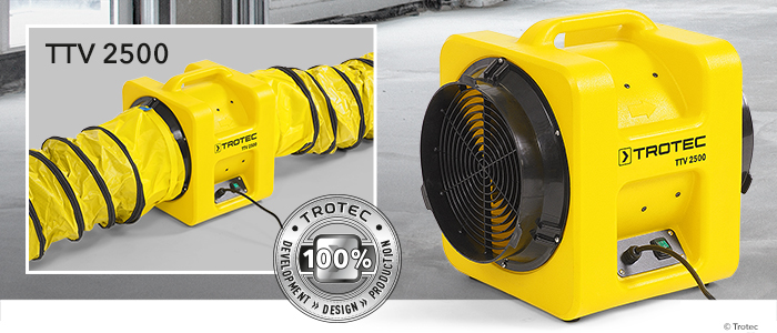 The new axial fans are here! Straight from our production line to our distribution warehouse. All of them in Trotec’s stylish new industrial design and all thoroughly prepared for their new job; the TTV 1500 and the TTV 2500 are professionals when it comes to providing a fresh air supply in poorly ventilated rooms or ventilation during channel construction works or welding. Interested? See for yourselves what our TTV conveying fans have to offer…