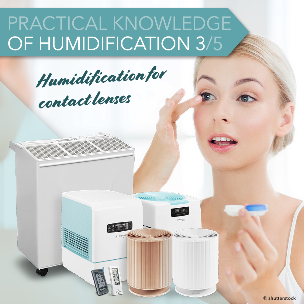 Often contact lens wearers in particular have to struggle with irritated eyes in the office. Because if the contact lens does not float on the tear film as it normally does, but lies directly on the cornea, the eye quickly becomes irritated. The reason for this is relatively simple: We blink less during screen work, which inhibits the supply of moisture, and then the dry air in the office tears open the tear film. There are two solutions for this: One is to consciously blink. And one using professional humidifiers from Trotec.