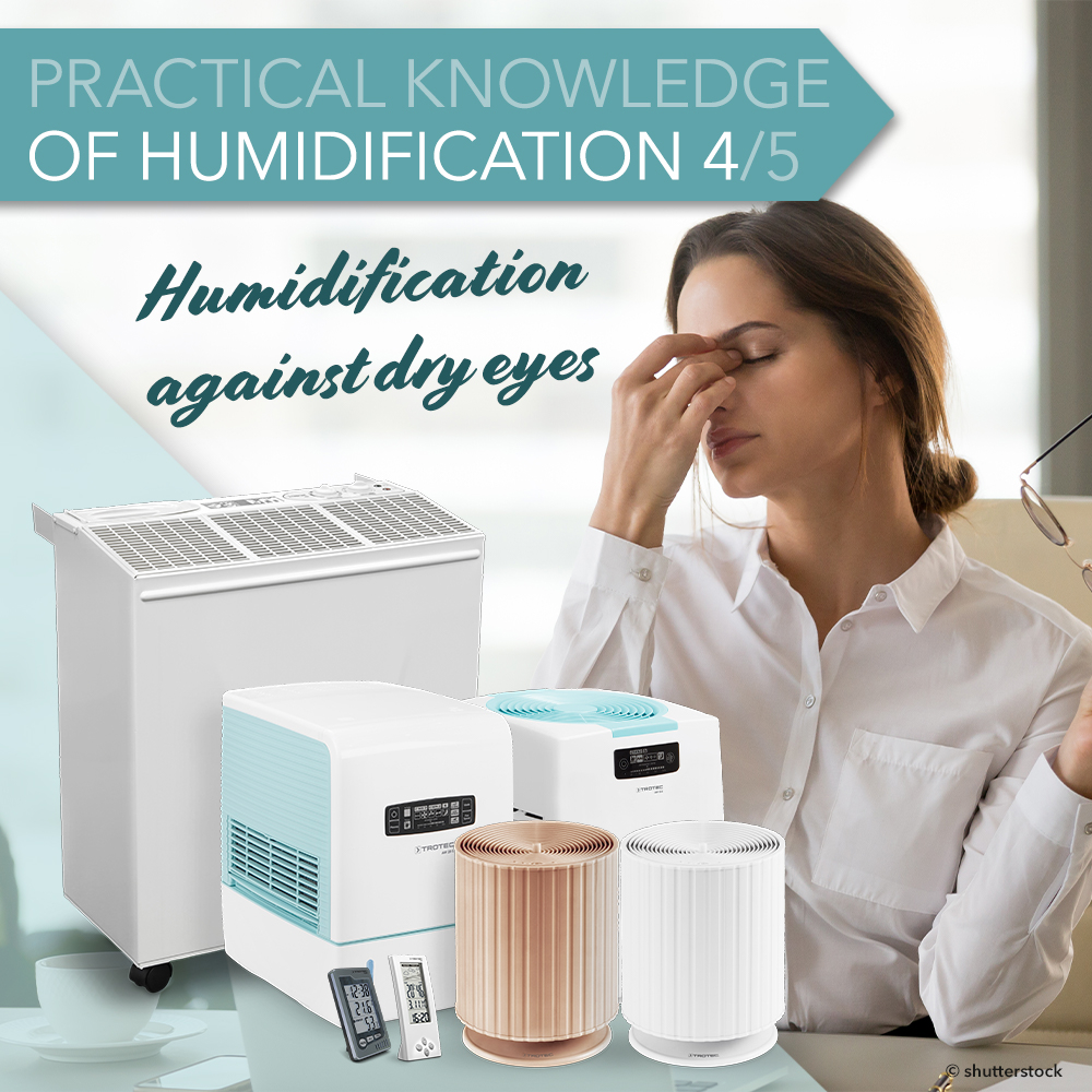 Office folk are often all too familiar with the problem of endlessly irritated eyes. When your eyes have too little tear fluid, they become excessively dry, they itch, they burn and they become red. We’re well aware of the reasons for this: on the one hand, long periods of working at a computer screen suppress the closing of the eyelids, akin to a reflex, thus inhibiting the supply of moisture. Conscious blinking, on the one hand, does help. On the other hand, office air that is often excessively dry causes the tear film to evaporate more quickly. A professional humidifier – from Trotec – helps to combat this!