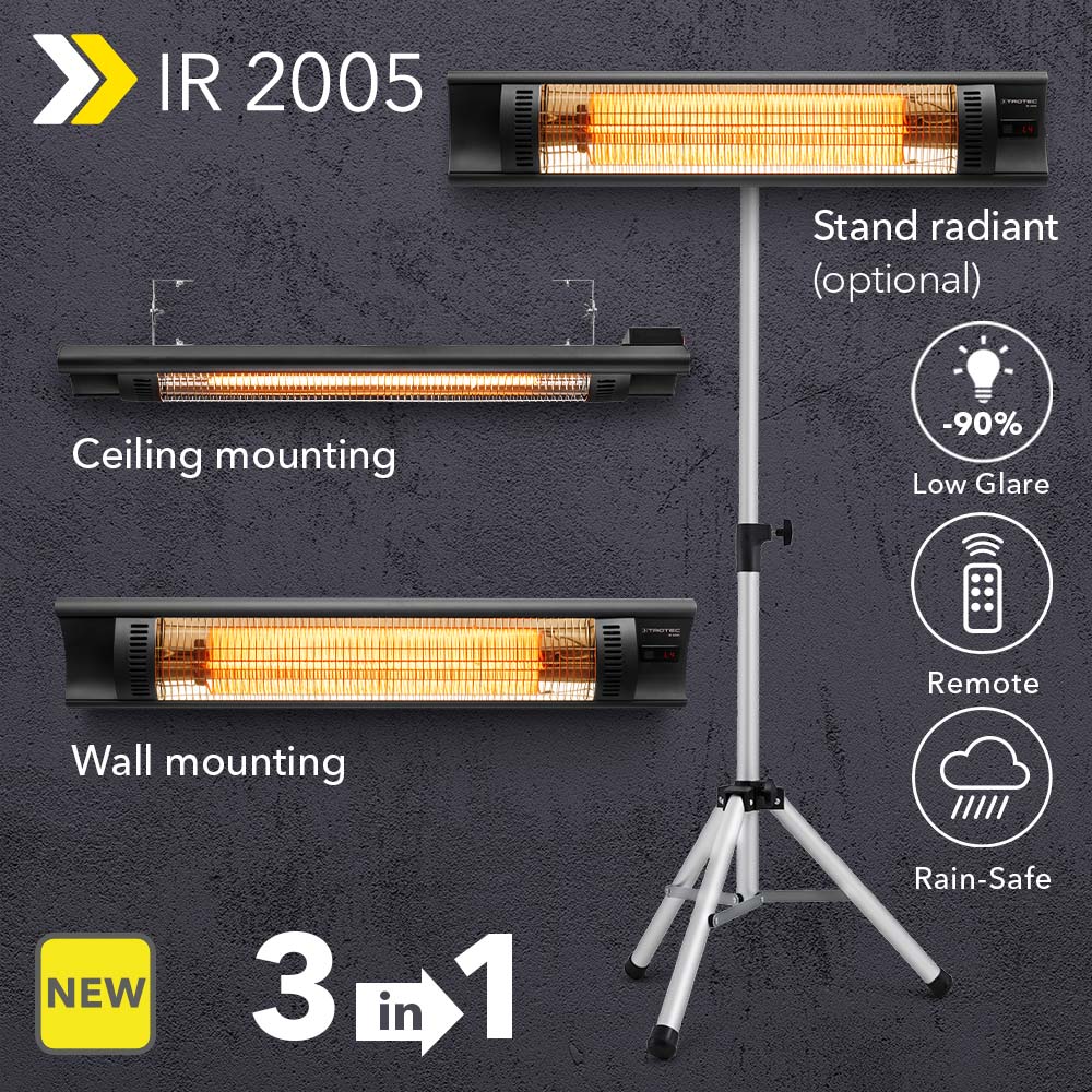 NEW Design – Infrared Radiant Heater IR 2005 impresses outdoors with up to 2000 W in 4 heating stages, great versatility and remote control