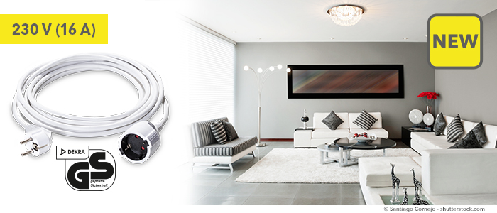 5 metres more independence. From the nearest plug socket, for example. Or from the ever-too-short cables for electrical devices. The 5 metre long 230 V PVC extension cable, 16 A, with safety plug and coupler is optimally suited for use anywhere in the house or flat, up in the attic or down in the cellar. And it significantly expands your operation range – if necessary, even when perpetually vacuuming or ironing…