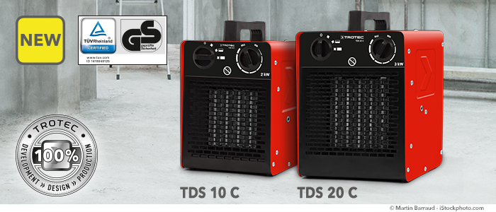 Autumn is coming – and coming with it are the new TDS-C series heaters. Designed as “heaters that are always at hand” for handicraft and construction, they excel in all the advantages that can be expected of modern electric heaters for rough everyday use in assembly areas or construction sites. Our brand name guarantees this, as the new heaters are 100% Trotec from the development to the design and on to the assembly of the product – including the advanced PTC-ceramic heating elements.