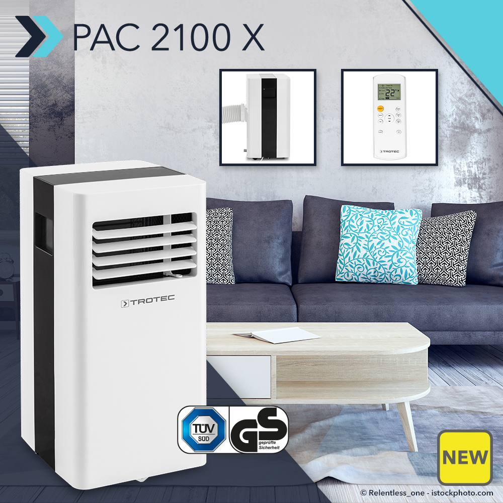 Keeping a cool head while saving money at the same time in the next heat wave – it’s possible. Our new PAC 2100 X air conditioner is equipped with an energy-saving solution that it uses in a particularly clever way: When the preselected temperature is reached, the integrated thermostat shuts down not only the compressor but also the fan and thus all primary power consumers in the device completely – thereby enabling extremely economical cooling. Isn’t that super cool?