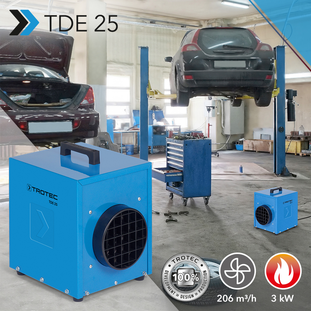 Electric Heater TDE 25: compact power cube as a long-term proven permanent solution for workshop, warehouse, and on the construction site – finally available
