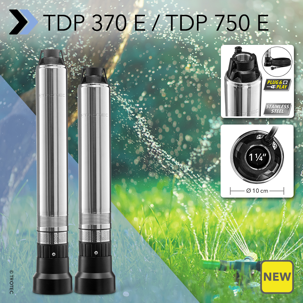 Those with trees in their garden that need to be regularly watered can now save cash by pumping their own water in the ‘hottest summer ever’. No wonder that our new TDP 5500 E and TDP 7500 E deep well pumps are rapidly selling out. The TDP 5500 E is back in stock now: with it, you too can make use of your freely available service water and groundwater. You will be independent of your local water provider – and from its future price increases.