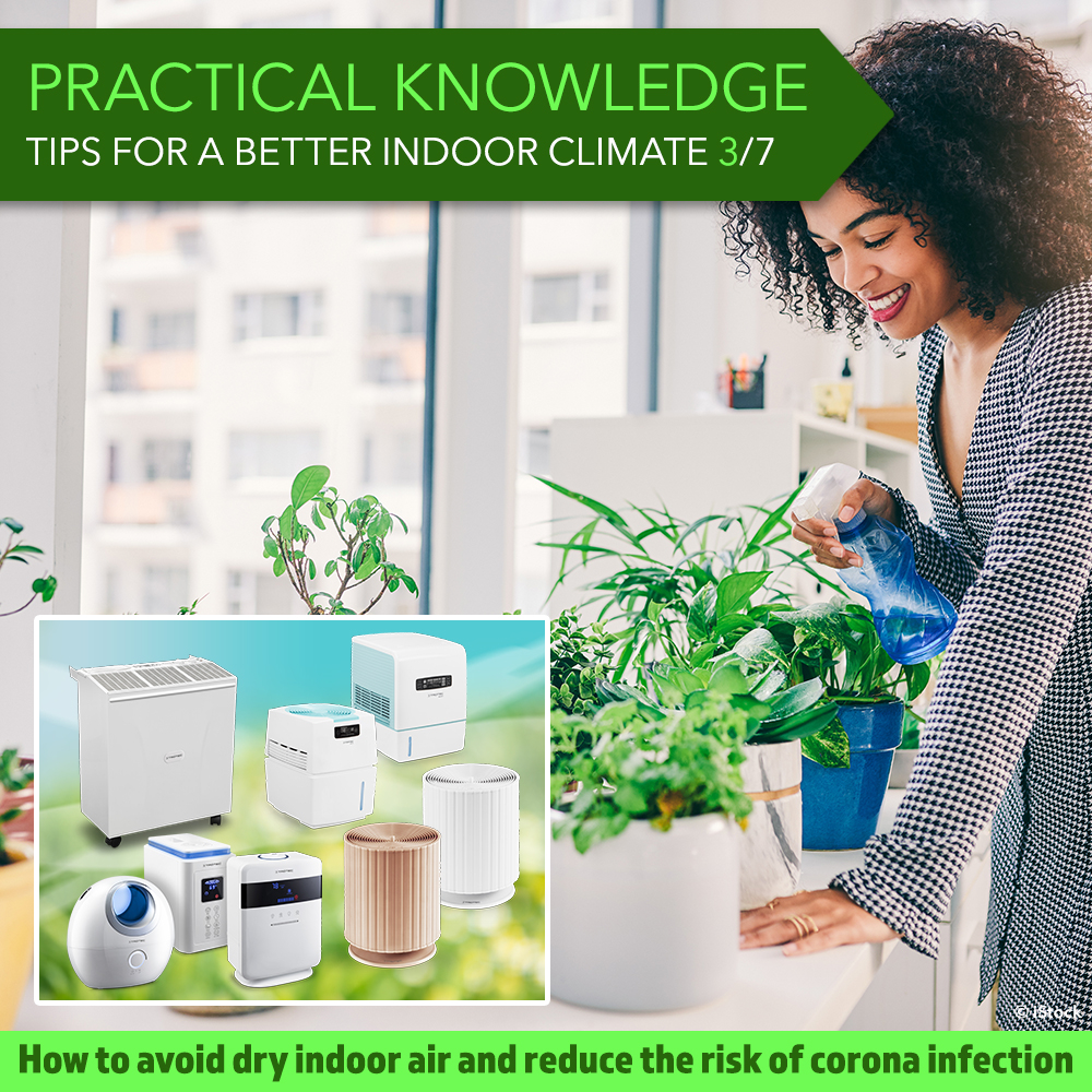 In the last few weeks, winter has once again made us feel what ‘really cold’ means. Many people at home have turned the heating knobs all the way to the left – and are now suffering from the consequences of dry heating air. It dries out our mucous membranes, reduces their cleansing function and creates an ideal habitat for viruses. It also causes undesirable effects such dry nose and irritated eyes, as well as coughs, colds and sore throats. Because low humidity also increases the lifetime of infectious corona aerosols in the room air, there is virtually every reason to humidify the air as much as possible in the future.