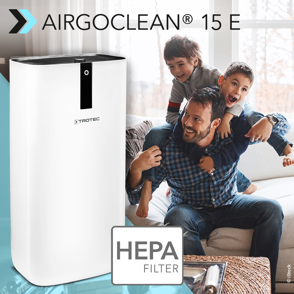 Air is not always clean air. This is especially true for indoor air, which is unfortunately almost never free of pollutants. This is because indoor air is usually also polluted by highly dangerous fine dusts, viruses and bacteria as well as mould spores and even ‘normal’ companions such as pollen, house dust mites and animal hair. In effect, this reduces your performance and that of all family members and, in the worst case, can even cause illness. So it is high time to remove these pollutants from your room and breathing air with the new Airgoclean 15 E Air Purifier and its professional dual filter system, which is finally available again.