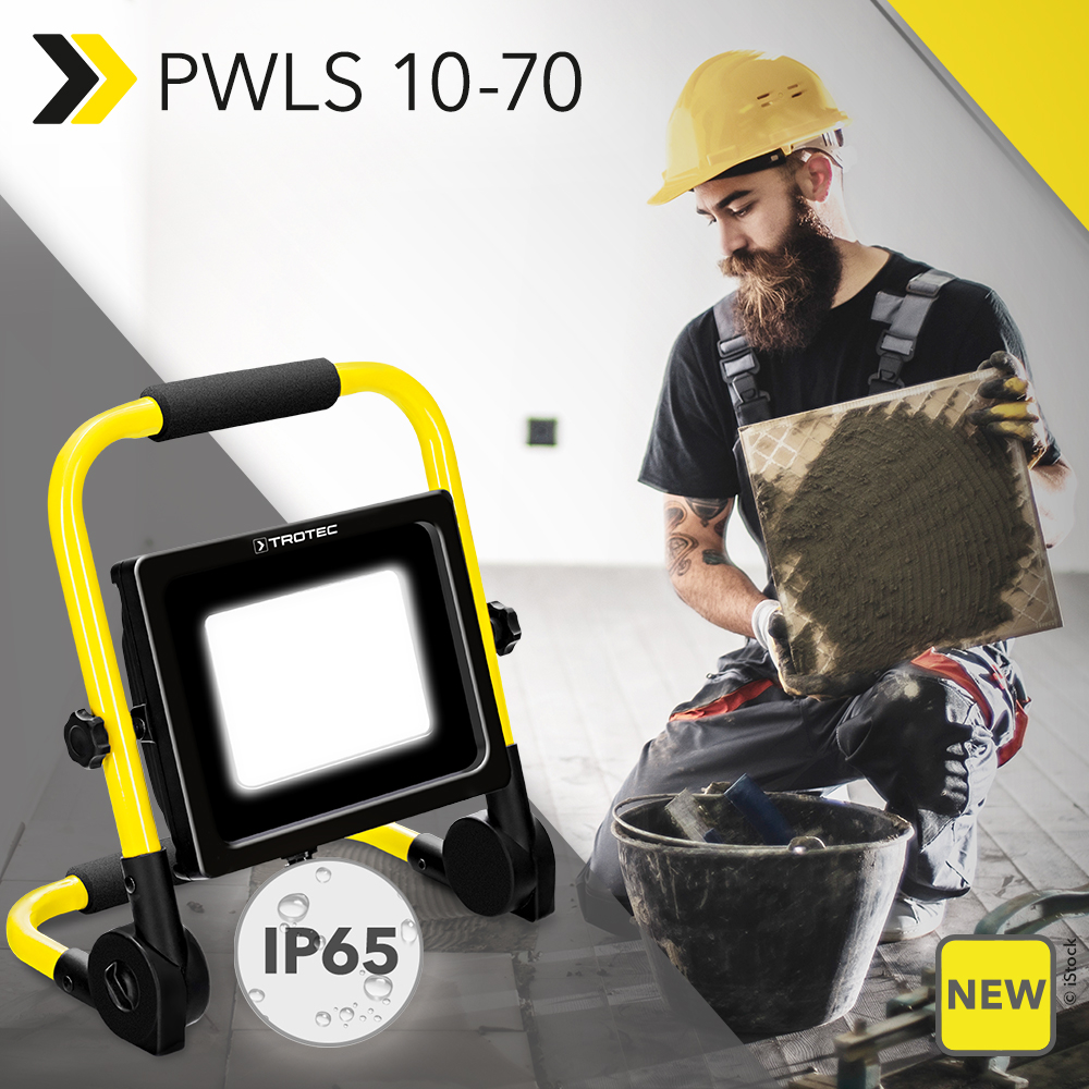 Anyone who wants to effectively design their work in shell construction or renovations knows how important it is to have the ‘right’ light source. So simply bring extra-bright light into the darkness – with the new LED Construction Spotlight PWLS 10-70, which is finally available. Thanks to its high luminous flux output of 6,300 lm and a large beam angle of 120°, the 70-watt construction spotlight ensures you to work comfortably at any time of day or night. And best of all: compared to normal halogen spotlights, the professional and affordable professional spotlight from Trotec uses up to 85 percent less electricity thanks to the use of the latest LED technology.