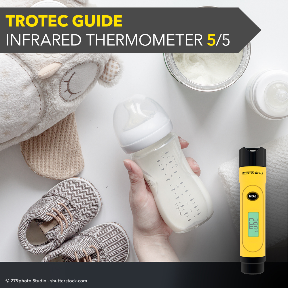 All conventional infrared thermometers from Trotec are usually able to measure the temperature of liquids. No matter whether it’s the temperature in your own pool – isn’t that much too cold? – or the bath water for babies and small children – isn’t that much too hot? . Of course, the temperature test can also refer to baby food in bottles. And not forgetting hot and dangerous liquids like grease, oil and acids in the kitchen or workshop.